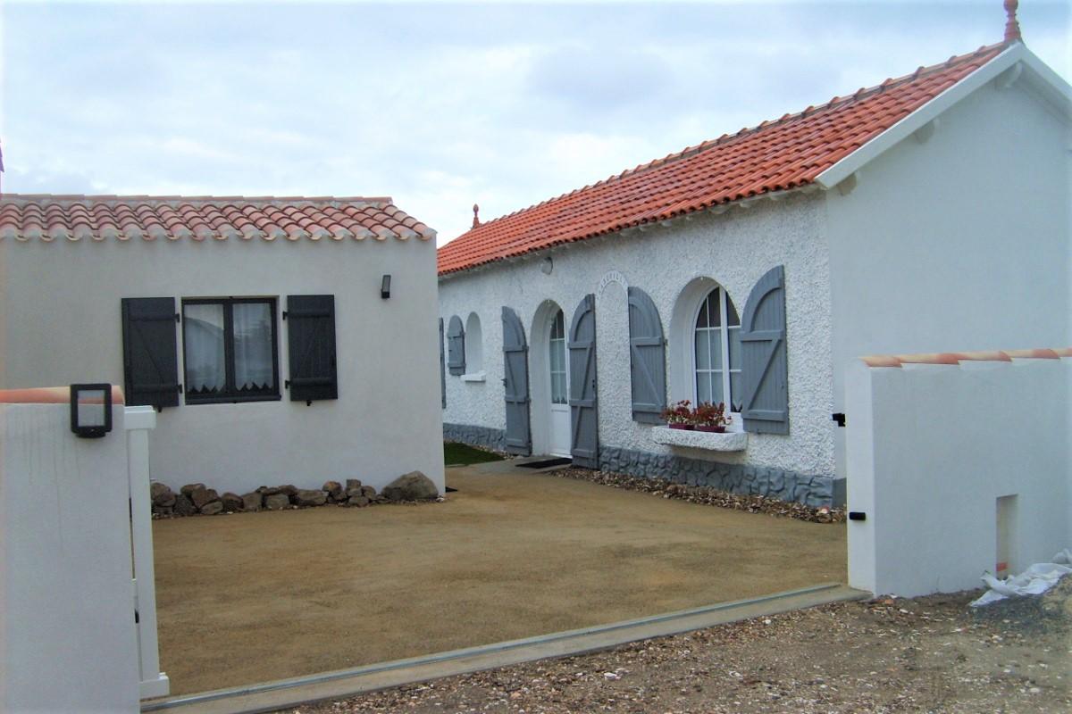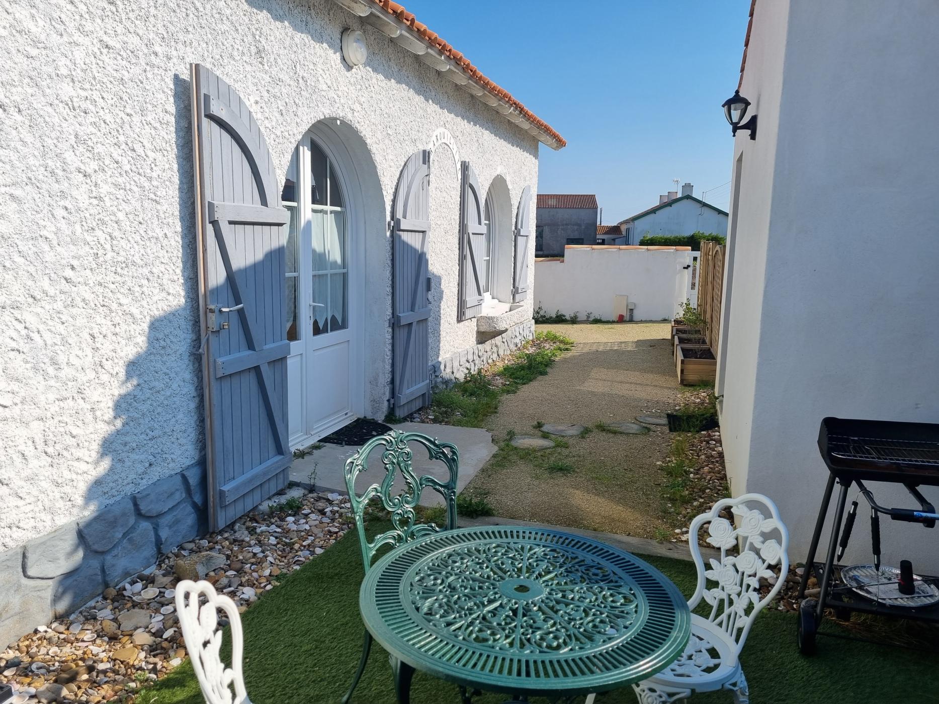 Une adorable petite maison blanche typique de l'île située à l'entrée du village de l'Herbaudière, sur l'avenue Mourain, entre une maison neuve (également louée) et un champ des célèbres pommes de terres de Noirmoutier